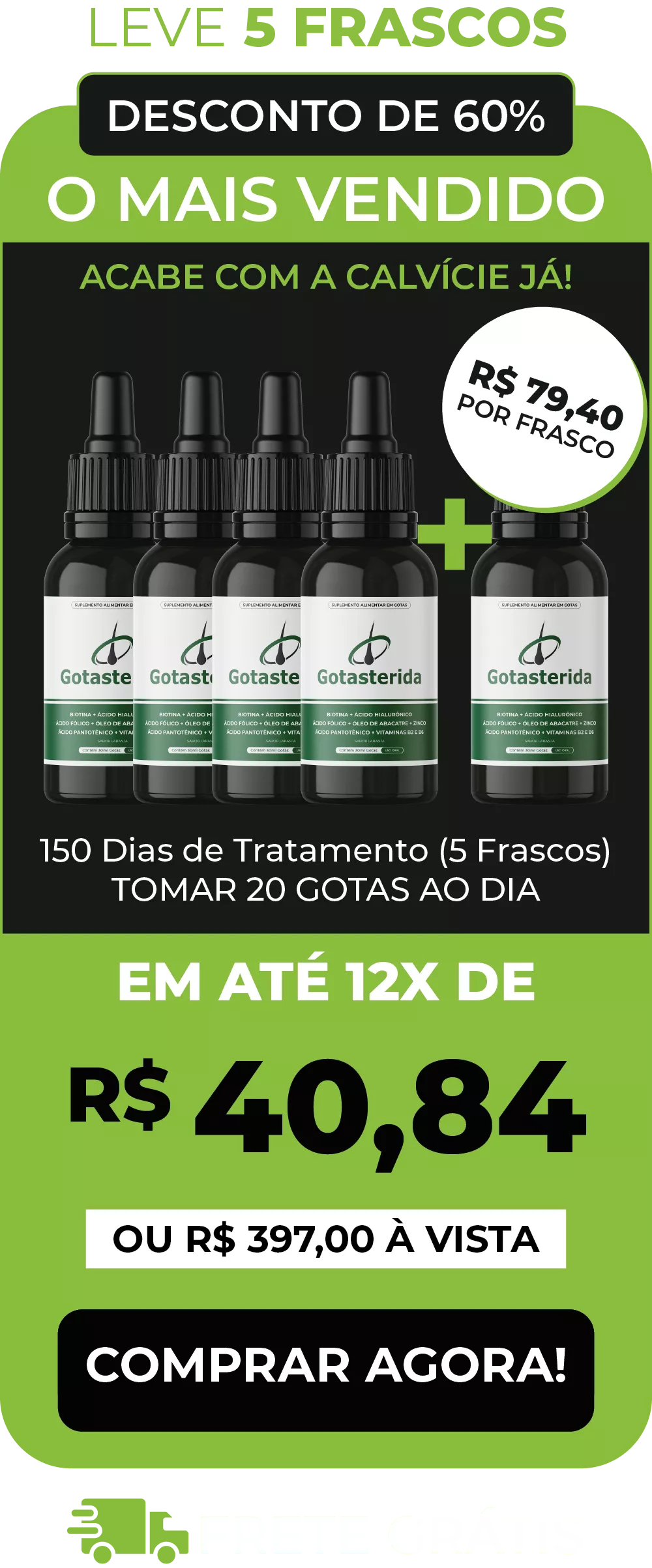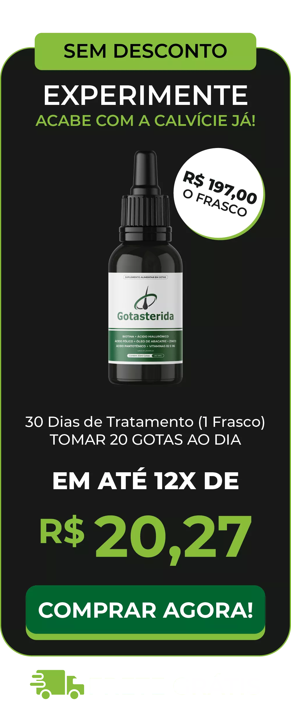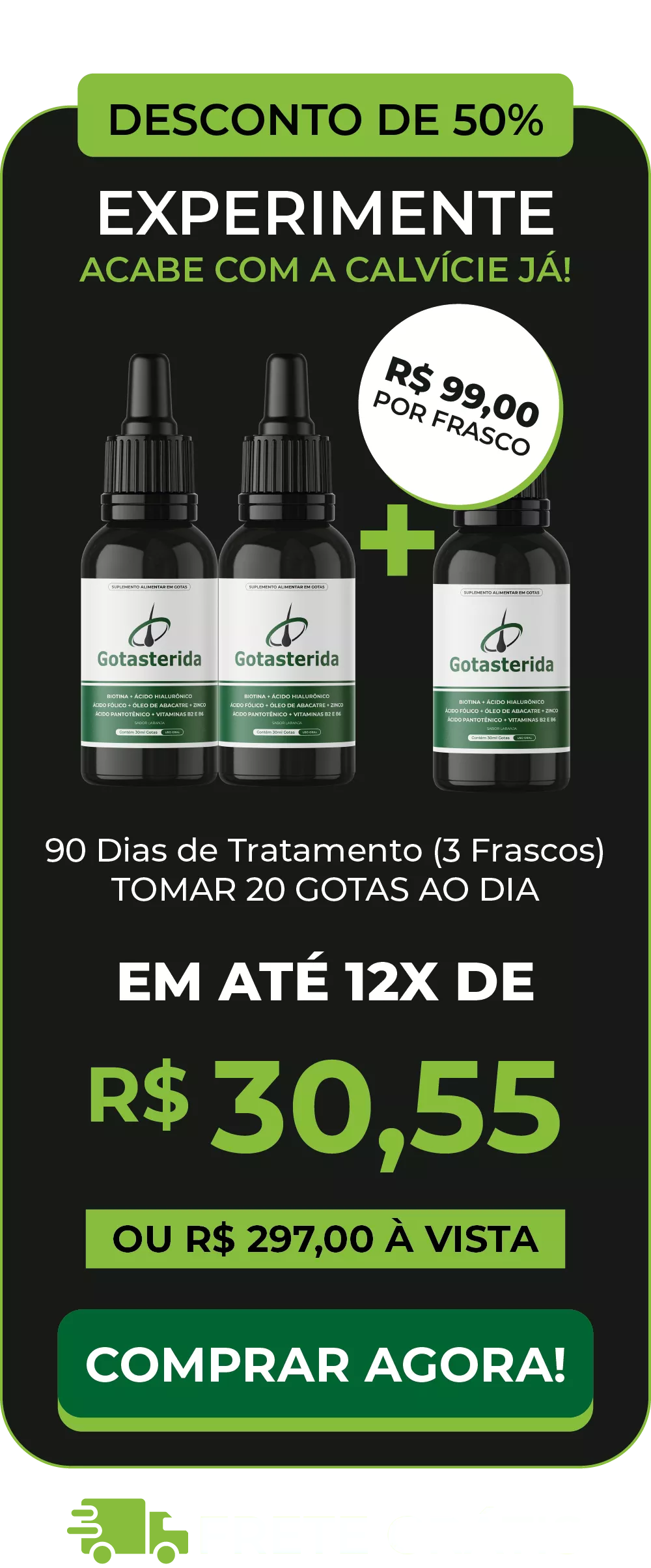 Experimente o Gotasterida Sem Medo: Um Tratamento Capilar Revolucionário Com foco na enzima 5 alfa-redutase, Gotasterida oferece 90 dias de teste sem riscos. Se os resultados não forem satisfatórios, o reembolso total é garantido, sem burocracia, e você mantém os frascos.